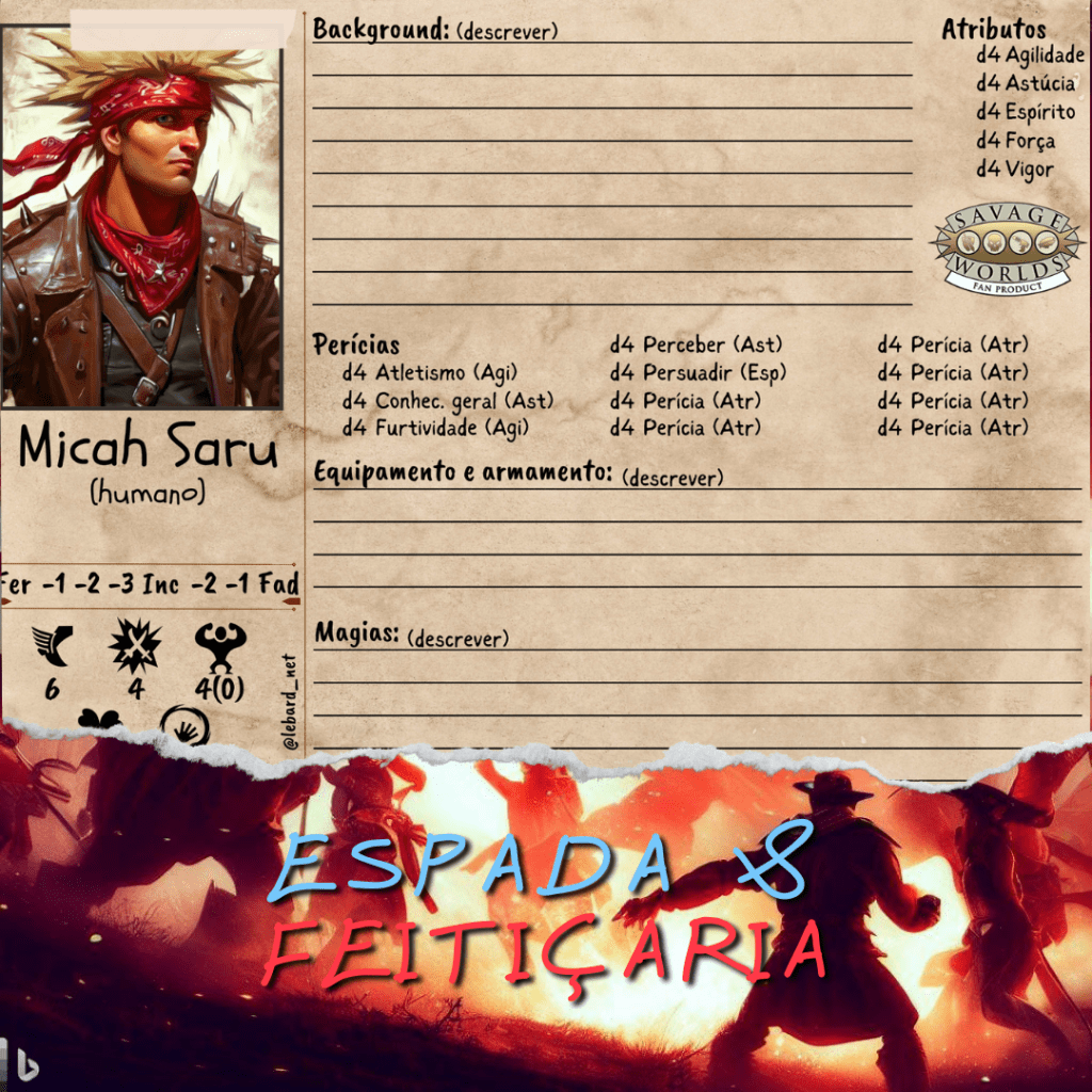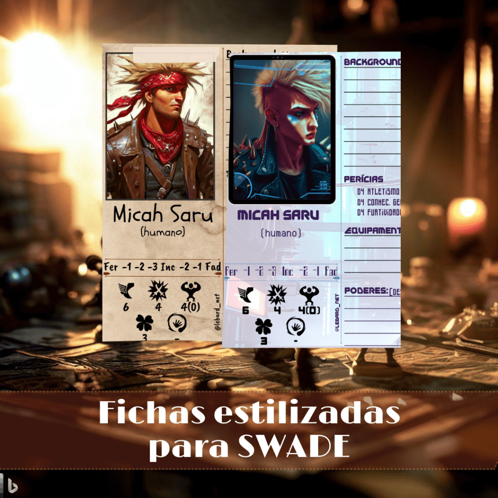 Como somos grandes fãs do SWADE, e pra dar aquela forcinha colocando seus jogadores no clima da sua mesa, disponibilizamos no CANVA dois modelos de fichas SWADE. Você poderá alterar as informações do personagem e sua foto, sem muito conhecimento da ferramenta, basta ter uma conta grátis no CANVA.