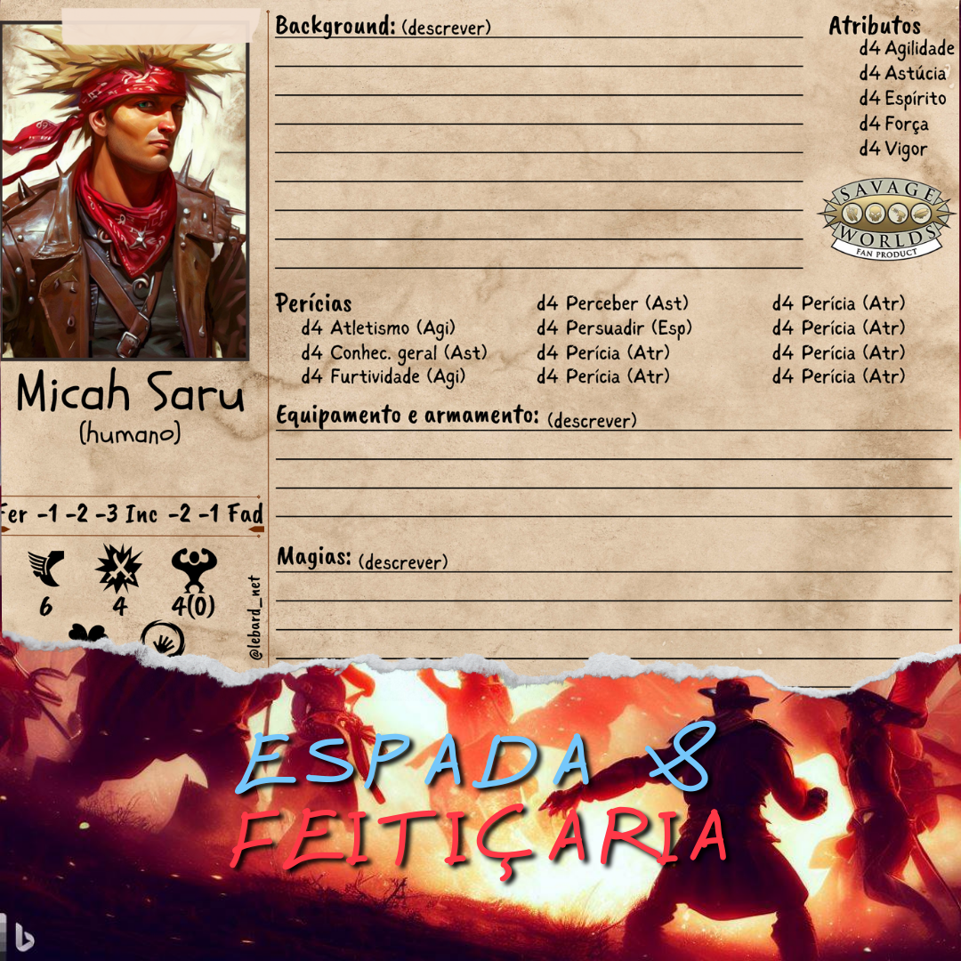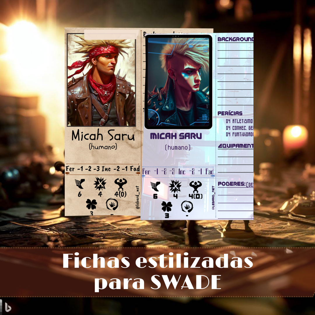 Como somos grandes fãs do SWADE, e pra dar aquela forcinha colocando seus jogadores no clima da sua mesa, disponibilizamos no CANVA dois modelos de fichas SWADE. Você poderá alterar as informações do personagem e sua foto, sem muito conhecimento da ferramenta, basta ter uma conta grátis no CANVA.